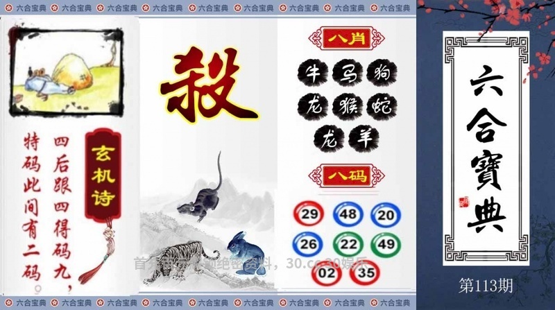 | 114期:七肖中特[鸡羊兔狗猪鼠牛]开:兔39准 |